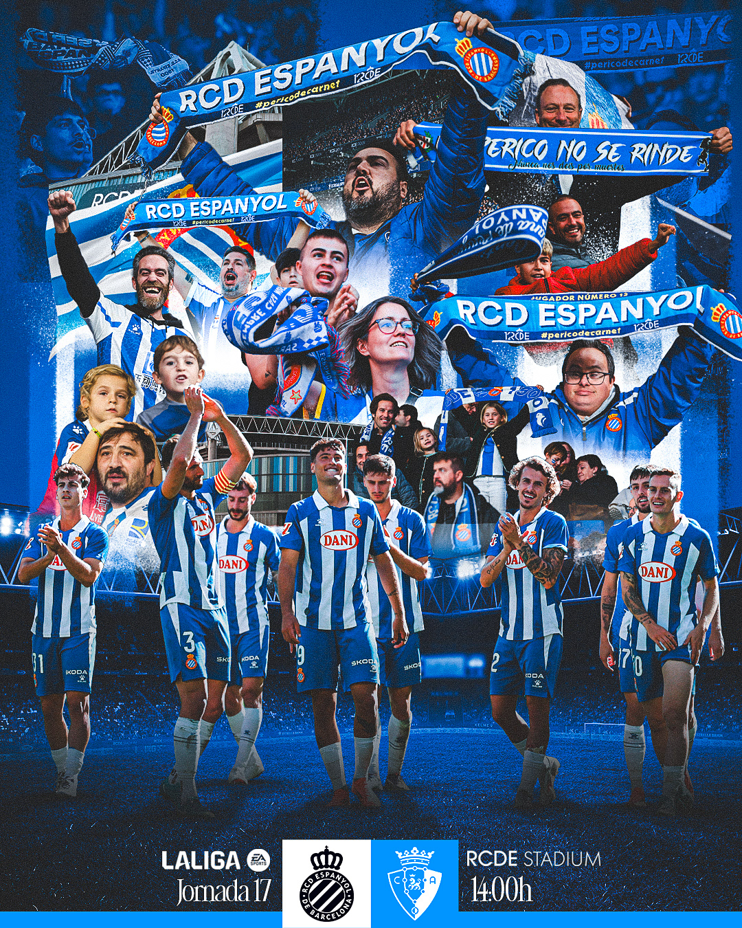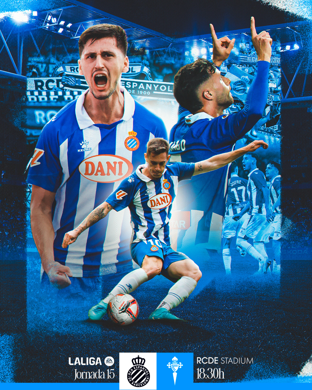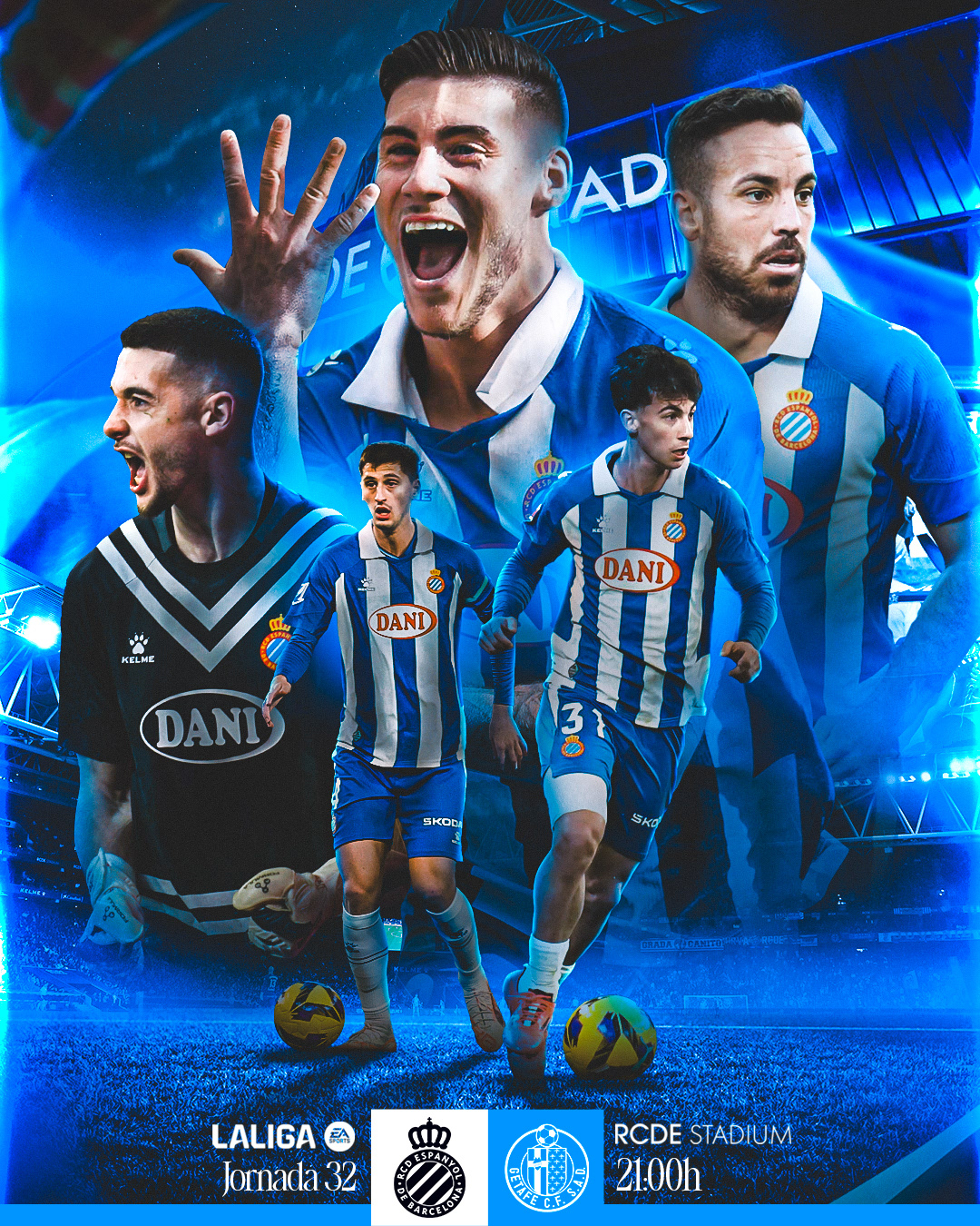 Gráficas para redes sociales para ilustrar días de partido y efemérides del RCD Espanyol de Barcelona.