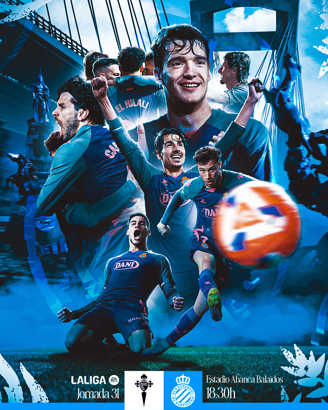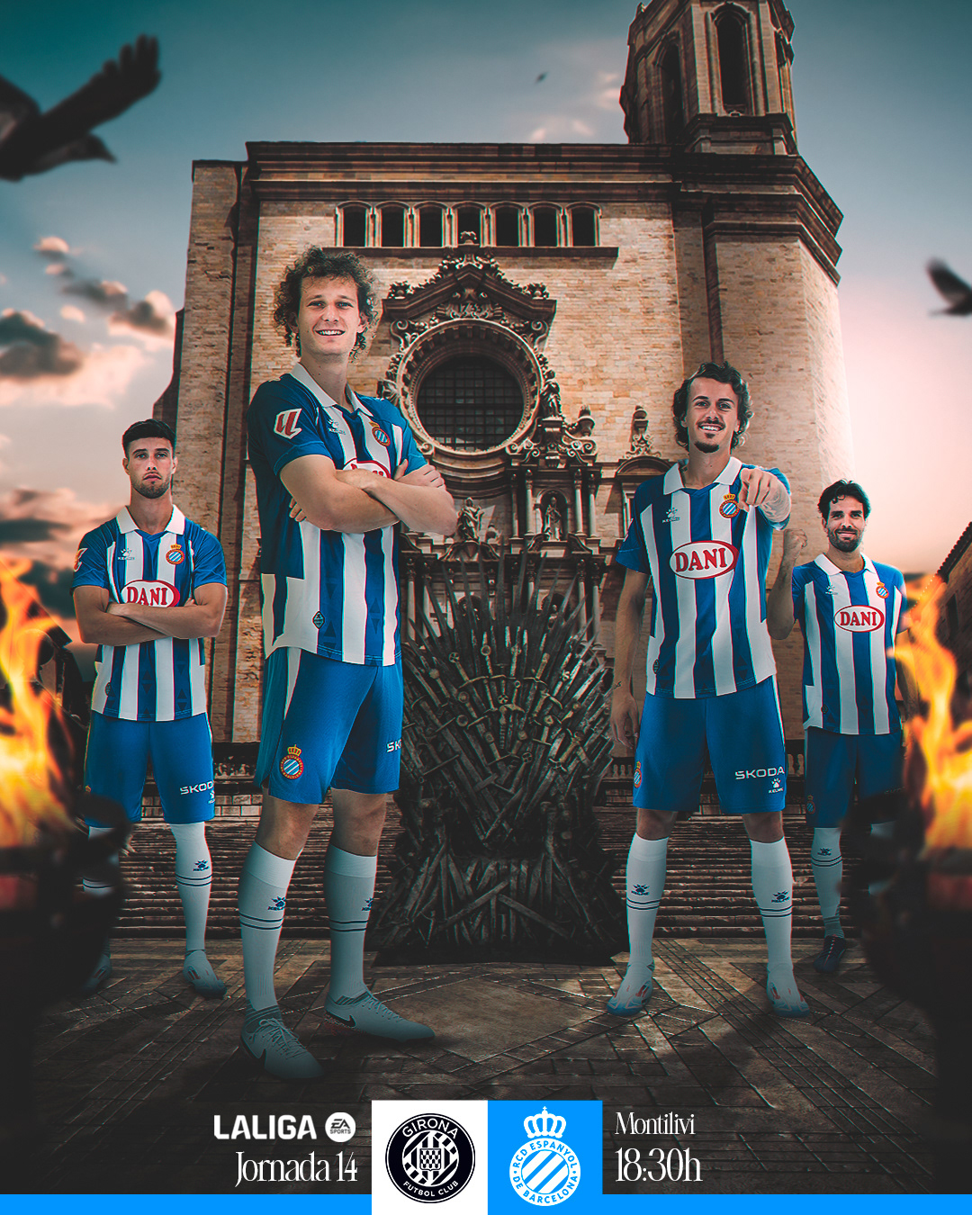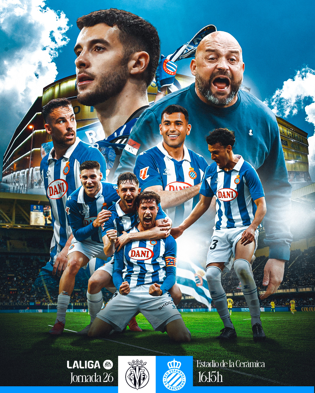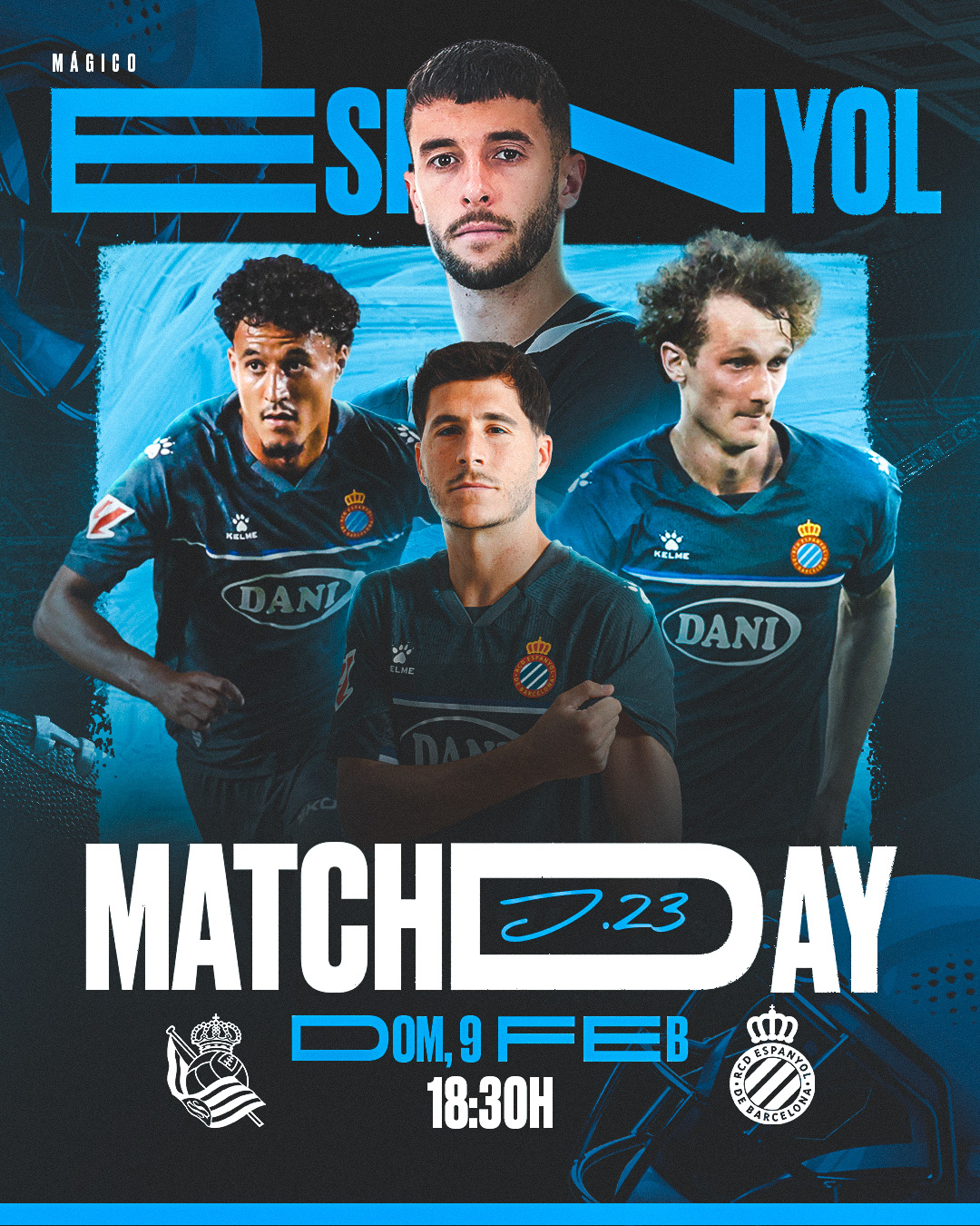 Gráficas para redes sociales para ilustrar días de partido y efemérides del RCD Espanyol de Barcelona.